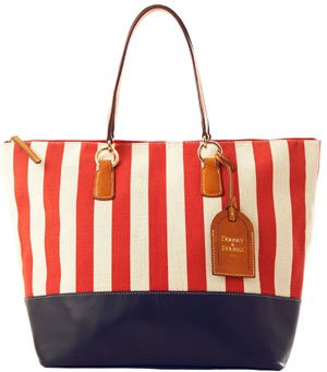 Best Buy Dooney & Bourke Linen / Lambskin O-Ring Shopper Red Stripe / Marine