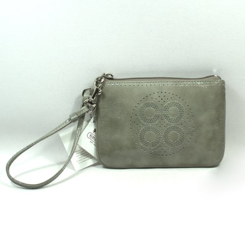 Discount Coach Patent Leather Audrey Perforated Signature Wristlet (Grey) 45569